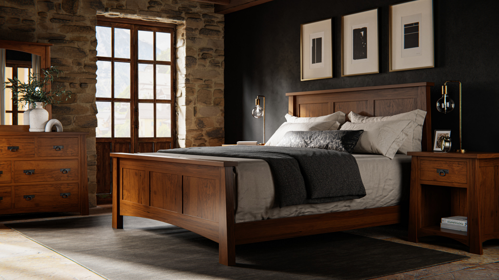NOT PICTURED: Antique Mission Bed (MB2712), 72″ Dresser (MB2720), Center Mirror (MB2732), 3 Drawer Armoire (MB2740)